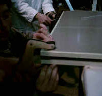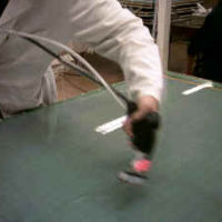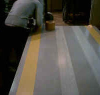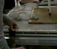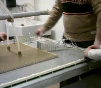 - Esercitare con un martelletto un a forte pressione sulle strips incollate per farle aderire bene evitando così la formazione di bolle d’aria. Le strips devono essere un po’ più lunghe della lastra di vetronite in modo da poterle ripiegar e sulla faccia opposta.